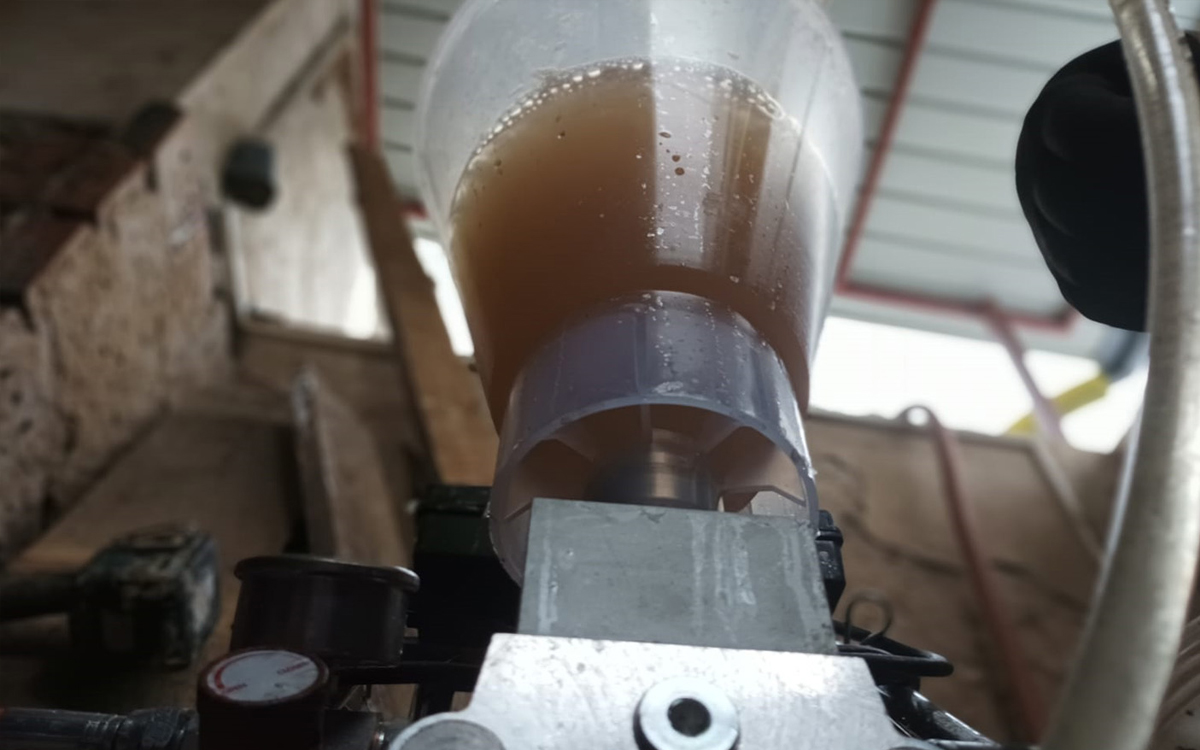 - Usazení speciálních pakrů a příprava směsi – Po zhotovení injektážních otvorů se instalují speciální pakry, které umožní průchod gelu do požadovaných míst aplikace. Gel je nutné připravit s ohledem na dobu gelové reakce tak, aby zreagoval až za stěnou a nepronikl tam, kam nemá. Důkladné promíchání směsi je zásadní. Při přípravě je nutné sledovat podmínky na místě, zejména teplotu vody a okolí.